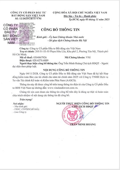 THÔNG BÁO DOANH NGHIỆP KIỂM TOÁN ĐÃ KÝ HỢP ĐỒNG KIỂM TOÁN BÁO CÁO TÀI CHÍNH NĂM 2025