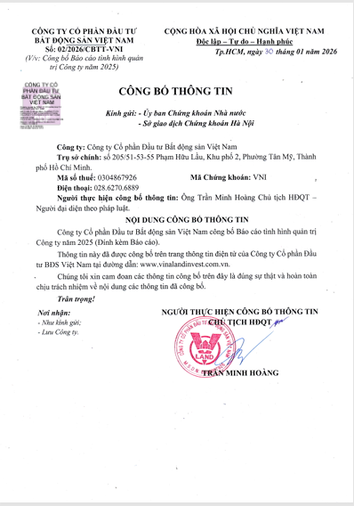 - THÔNG QUA CHỦ TRƯƠNG KÝ KẾT VÀ THỰC HIỆN CÁC HỢP ĐỒNG, GIAO DỊCH GIỮA CÔNG TY CỔ PHẦN ĐẦU TƯ BẤT ĐỘNG SẢN VIỆT NAM VÀ NGƯỜI CÓ LIÊN QUAN TRONG NĂM 2026